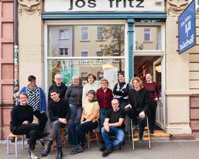Sie brennen für Bücher: das Jos-Fritz-Team vorm Laden in der ehemaligen Kohlenhandlung an der Wilhelmstraße.