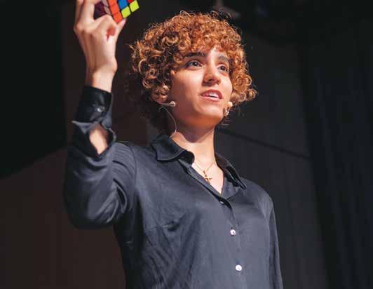 Kiana // Ich spiele zum Beispiel humorvoll auf Bindungsprobleme meiner Generation an. Laut Studien ist ein typisches Merkmal der Gen Z, dass sie sich nicht festlegen will und immer darauf hofft, es könnte noch etwas Besseres kommen. Auch Chat GPT ist ein großes Thema. Viele haben Angst, sie könnten ihren Beruf in der Zukunft an Künstliche Intelligenz verlieren. Ich übertrage das auf die Zauberei: In der Show soll mir der Chatbot einen Trick beibringen, aber er macht zu viele Fehler und versteht mich manchmal falsch. Ich soll etwa eine Banane in der Mitte falten, weil er denkt, es handle sich um ein Bandana in meiner Hand.