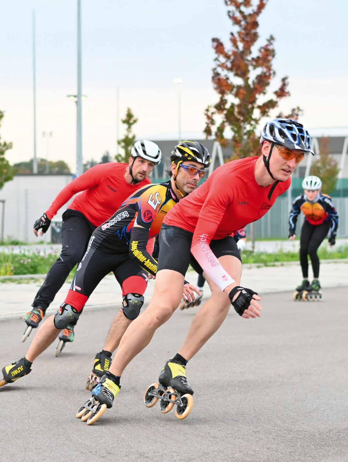 Mit einem Schnitt von rund 35 Stunden kilometern fahren die Skater ihre Rennen. Riskant sei der Sport dennoch kaum. Das ist „überraschend ungefährlich“, erklärt Sascha Kessler. Er hat sich zwar einmal das Handge lenk gebrochen. Da sei aber vieles unglücklich zusammengekommen. In der Regel bleibt es bei Schürfwunden. Wer richtige Schoner trägt, könne auch das vermeiden.