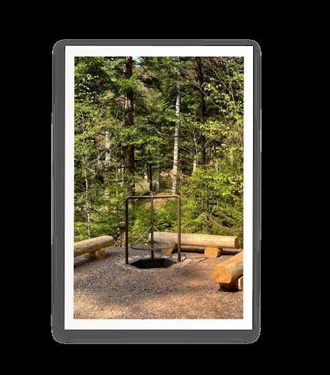 um den Kompostierprozess voranzutreiben und Geruchsbildung zu verringern. Außerdem gibt es eine Feuerstelle mit rustikalen Holzbänken; auf dem Grillrost ist mit Kabelbindern allerdings die Warnung befestigt, dass aufgrund der hohen Waldbrandgefahr Lagerfeuer leider nicht erlaubt sind.