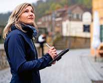 Viele Sachlagen kläre ich vor Ort im Kontakt mit den Kunden. Zur Scha densaufnahme nutze ich ein Tablet. Für meine Arbeit am Computer muss ich mit fachspezifischer Software um gehen können. Außerdem müssen wir viele Gesetze, Richtlinien sowie Hand bücher und interne Arbeitsanweisun gen kennen und beachten. Ich mag es, dass ich morgens nicht immer weiß, was mich erwartet. Jeder Schadenfall entwickelt sich anders. Oft fahre ich zu den Kunden, schaue mich vor Ort um. Ich führe Gespräche, bekomme Einblick in diverse Lebenssituationen. Es gibt natürlich ähnliche Abläufe und wiederkehrende Arbeitsblöcke.