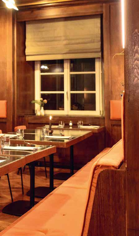 Seitdem hat sich viel getan. Bereits im Sommer nahmen Kaiser und seine Partnerin Lina Ory gemeinsam mit dem Architektenbüro Boucherie & Vollmert die Bauarbeiten im Innenraum auf und veränderten das Restaurant maßgeblich. Betritt man nun die Gaststube, erinnern nur noch einzelne Akzente an die vergangenen Zeiten. „Wir haben die Holzvertäfelung erhalten, weil ja auch ein Stück Geschichte mitspielt. Außerdem haben wir den Spagat zwischen Tradition und Moderne gewagt.“ Daher stehe auch der alte Buffetschrank weiterhin im Raum, genau wie die Vitrinen, die nur aufgearbeitet wurden. „So haben wir die Möglichkeit, das Alte zu bewahren und trotzdem frischen Wind hereinzubekommen“, erklärt Kaiser.