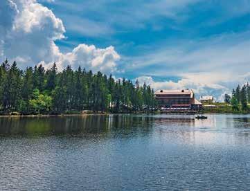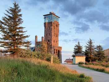 südlichen Ende und kurz vor dem Abstieg zum Mummelsee gibt es am Hornisgrindeturm noch einmal ein ähnliches Dach-der-WeltGefühl wie auf der Badener Höhe. Erschöpft, doch erfüllt von schönen Ausblicken und Eindrücken, geht es schließlich langsam hinunter zum dunklen, waldgesäumten und sagenumwobenen Mummelsee. Nicht weit vom Mummelseetor ist dann auch schon die Haltestelle des Busses nach Bühl.