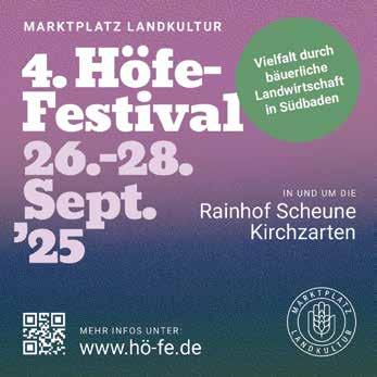 © Das „Lust auf REGIO“-Magazin erscheint im 41. Jahrgang. Die im Magazin enthaltenen Beiträge und Fotos sind urheberrechtlich geschützt. Jede Verwendung außerhalb der Grenzen des Urheberrechtsgesetzes ist ohne Zustimmung des Verlages unzulässig und strafbar. Dies gilt insbesondere für Vervielfältigung und Einspeicherung in elektronische Systeme. Gleiches gilt für den Nachdruck der von uns erstellten Bilder und Anzeigen. Alle Terminangaben ohne Gewähr. Infos unter www.chilli-freiburg.de