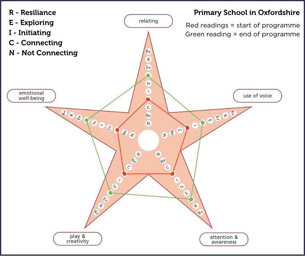 In order to monitor detailed progress in individual sessions, the Music Therapy Outcome Star™ assessment tool was completed for each pupil at the start and end of their therapy sessions. The results showed a significant improvement across all areas.