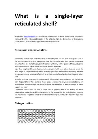 In recent years, with the use of high-strength and lightweight materials, the development of structural design methods, construction technology and the application of computer numerical simulation analysis have created extremely favorable conditions for the development of largespan spatial structures.