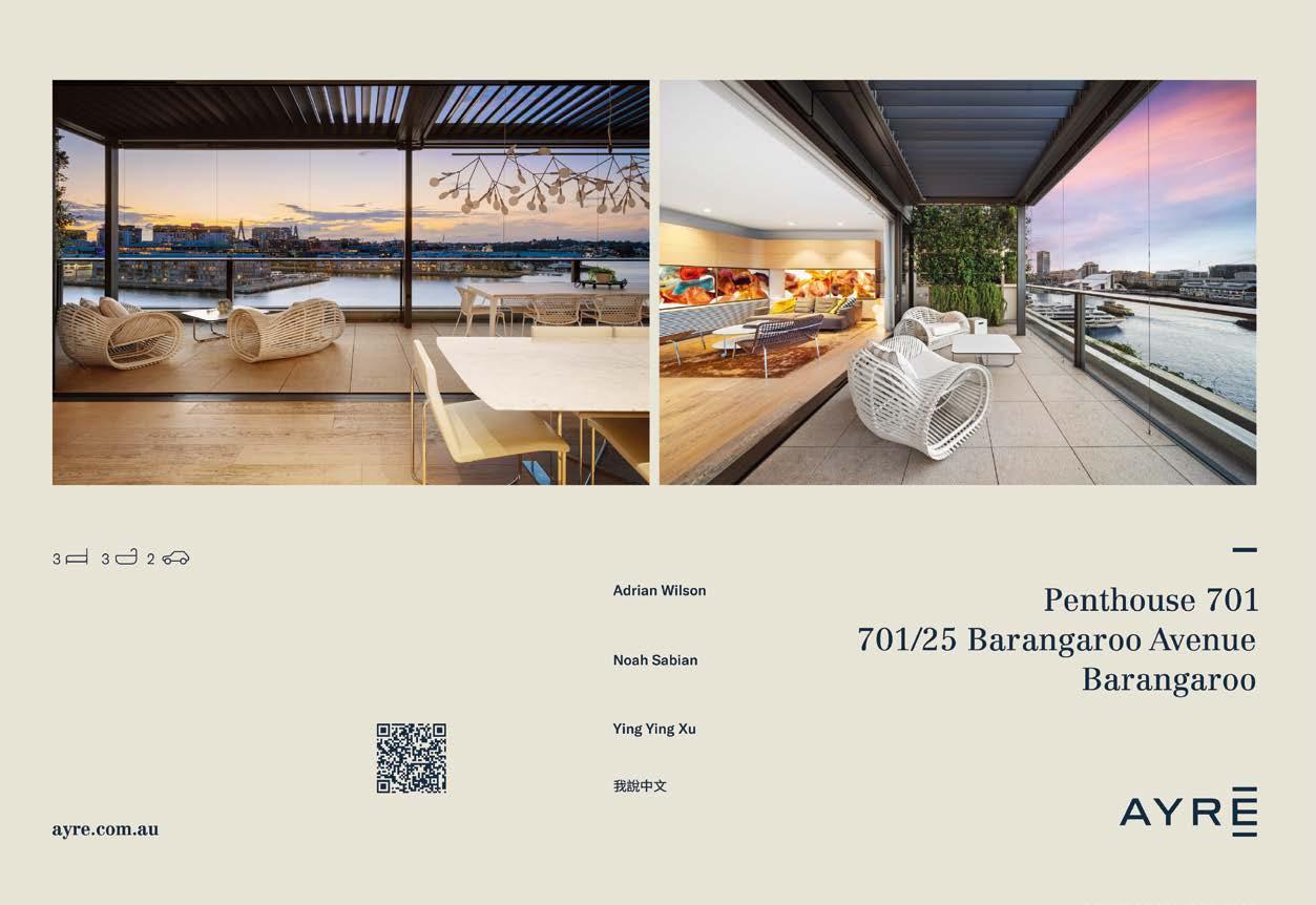 該豪華公寓坐落於充滿活力的 Barangaroo中心,巧妙糅合都市便 利與海濱度假的悠然氛圍,室內由知 名設計師精心打造,是一處難得一見 的奢華生活居所。坐擁無遮擋的海港 全景,日出日落盡收眼底。更令人稱 羨的是,步行即至各類精品零售店 鋪、餐飲店以及休閒娛樂場所,為追 求非凡生活品質的您提供獨一無二的 都市濱海生活方式。