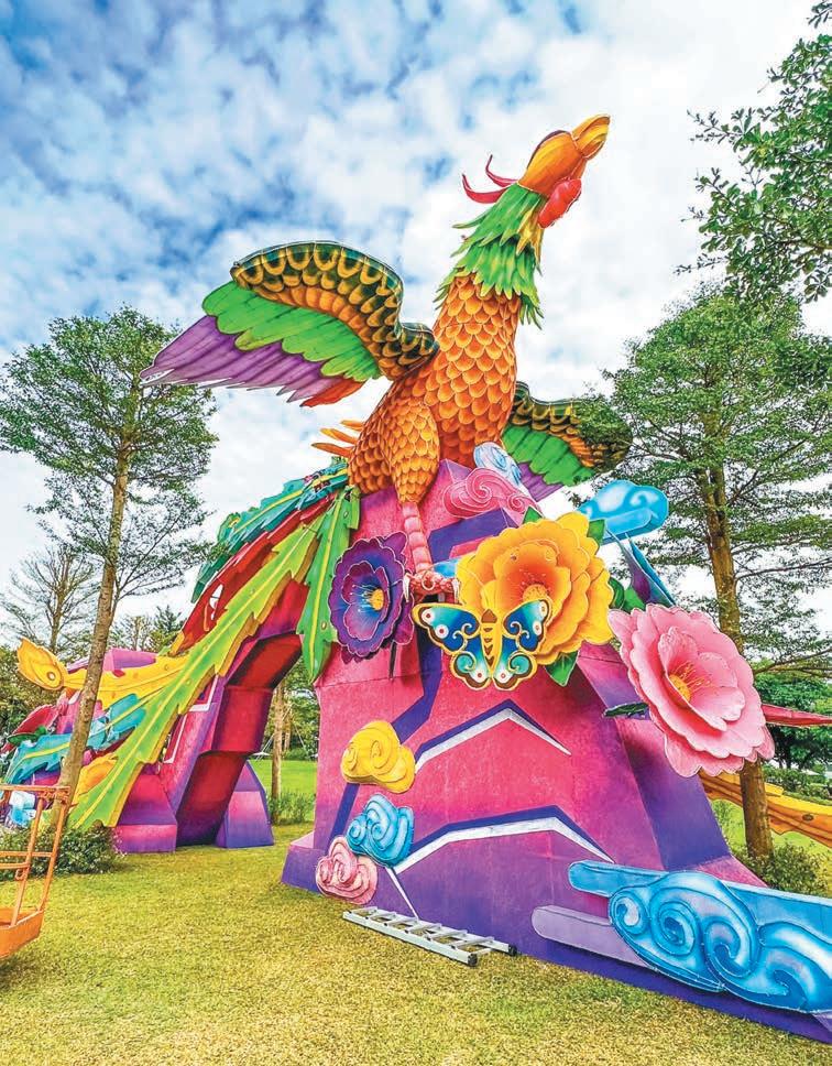 ⇦佛光山春節燈會主燈「鳳凰展翅呈吉祥」高達11 公尺,展現昂首起飛之勢。