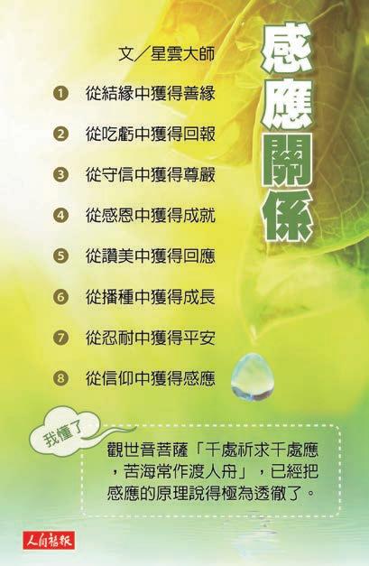 每一個人一日當中,要有 多次的感動;自己也要有 一些語言、發心給人感動 。相互的感動,那就是禪 心。