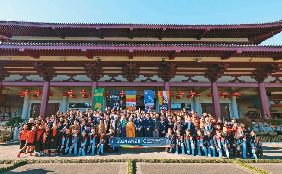 ⇧第26屆「澳紐佛光青年會議ANZBYC」5日於紐西蘭北島佛光山隆重開幕, 學員與貴賓大合照。 圖/紐西蘭佛光山提供