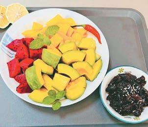 酪梨的品種很多,不同的月分,可 以品嘗不同品種的風味,炎炎夏日裡 ,甜滋滋的火龍果、芒果都正是產季 ,不妨搭配酪梨一起入菜,簡單拼裝 擺盤,就是一盤料多、味美的夏日水 果沙拉冷盤,因酪梨含有非常豐富的 油脂,有益於脂溶性營養素如:維生 素E、β胡蘿蔔素、玉米黃素、葉黃 素的吸收,其豐富的油脂更具有抑制 血糖快速上升、增加飽足感、潤腸的 益處。