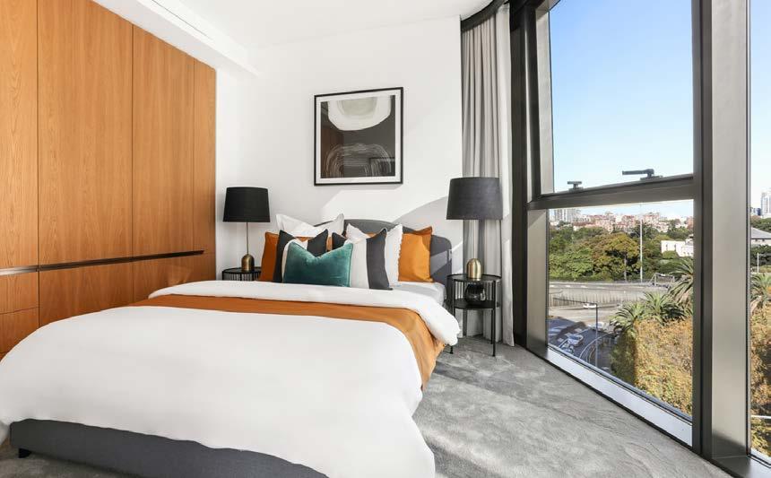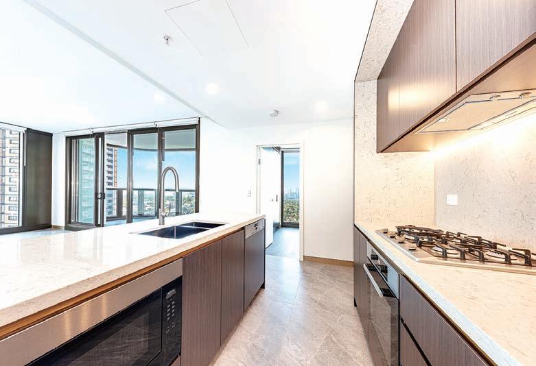 经过精心设计 ,完美地 平衡了城市和理想生活 , TheBryson 的独家 Skyhome 和 Penthouse 公寓采用开放 式布局 ,优雅的纹理和材 料 ,打造优质饰面 。温暖的 木材和石材在整个生活和 厨房空间中大量使用 ,最大 限度地利用了悉尼的自然 光线。