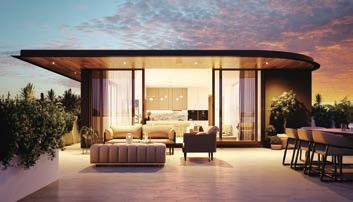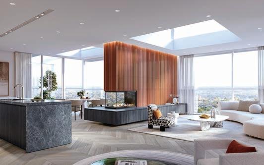 经过精心设计 ,完美地 平衡了城市和理想生活 , TheBryson 的独家 Skyhome 和 Penthouse 公寓采用开放 式布局 ,优雅的纹理和材 料 ,打造优质饰面 。温暖的 木材和石材在整个生活和 厨房空间中大量使用 ,最大 限度地利用了悉尼的自然 光线。