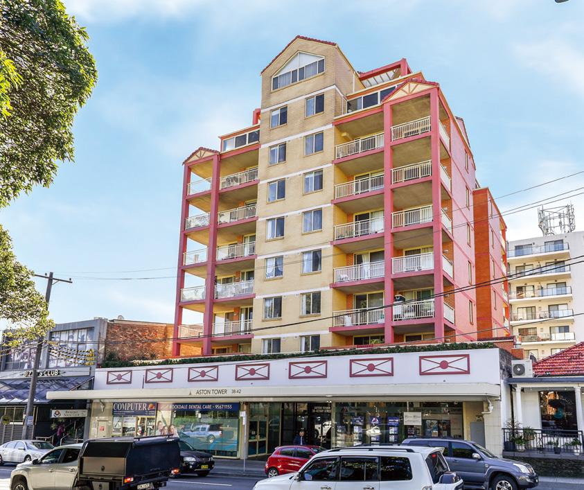 晨起推窗,西北向全景陽臺將城市風光與璀璨日落盡收 眼底。這套Aston Tower西北角的雙磚公寓位於5層,距 Rockdale火車站200米(約)。