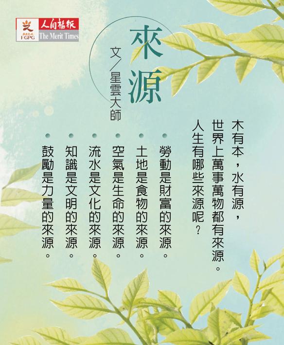 我們所希望的人生,不應該只是追 求這種快樂、那種滿足,而是要能 淨化生活,提升人格道德,要能自 度度人、自覺覺他,要發揮生命的 意義與價值,這才是永恒的生命, 這樣的生命才能獲得真正的快樂。