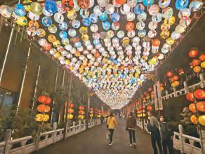 為期一個月的平安燈會,燈燈相照 構成繽紛美麗的風景,總是吸引各地 的遊客來山打卡,留下美麗的記憶。 漫步在莊嚴的殿宇,用心設計的創意 彩繪燈籠,夜晚明亮的燈海隧道,就 如黑夜裡的一盞盞希望,引領著往前 行進,向前有路。