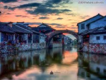 江南有六個出名的古鎮:碧 玉《周莊》;富土《同裏》;風情《甪 直》;夢裏《西塘》;水閣《烏鎮》;富 甲《南潯》。雖然各有特色,但是卻 都有一個共同性 —水路交錯 其間,人們沿岸而居,往來旅人, 路短靠步行,路遠靠筏舟,一切竟 然如此自然與和諧。