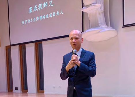 活動首先播放慈濟全球大藏經, 展現慈濟人在世界各個角落發揚慈悲 人文與大愛精神,隨後范厚祿致詞, 肯定慈濟志工長期投身公益,貢獻當 地社會,將證嚴上人慈悲博愛的精神 發揚光大,同時感謝傅新寅師兄及慈 濟志工們協助辦事處各項急難救助工