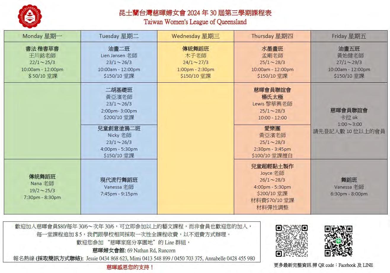 時間:每月最後一週的 週六上午9:30-11:00am 本月是2月24號 地址:123Hammersmith St, Coopers Plains 電話: 0478 456 268 曾先生