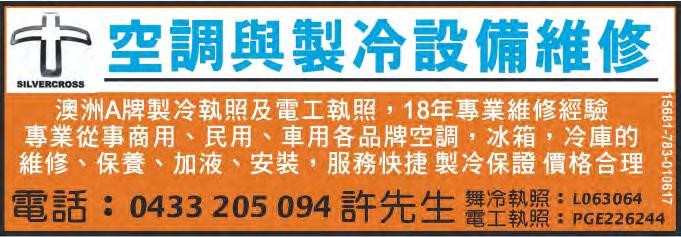 昆士蘭日報 QueenslandChineseTimes Friday, Saturday 10, 11 May 2024 1688.com.au 澳洲新聞網 186 Mains Road, Sunnybank Q 4109 E: info@cqt.com.au T: (07)3344 1680 第1627期 每週五 免費發行 Shop 2, 14 Zamia St, Sunnybank QLD 4109 1300 019 777
