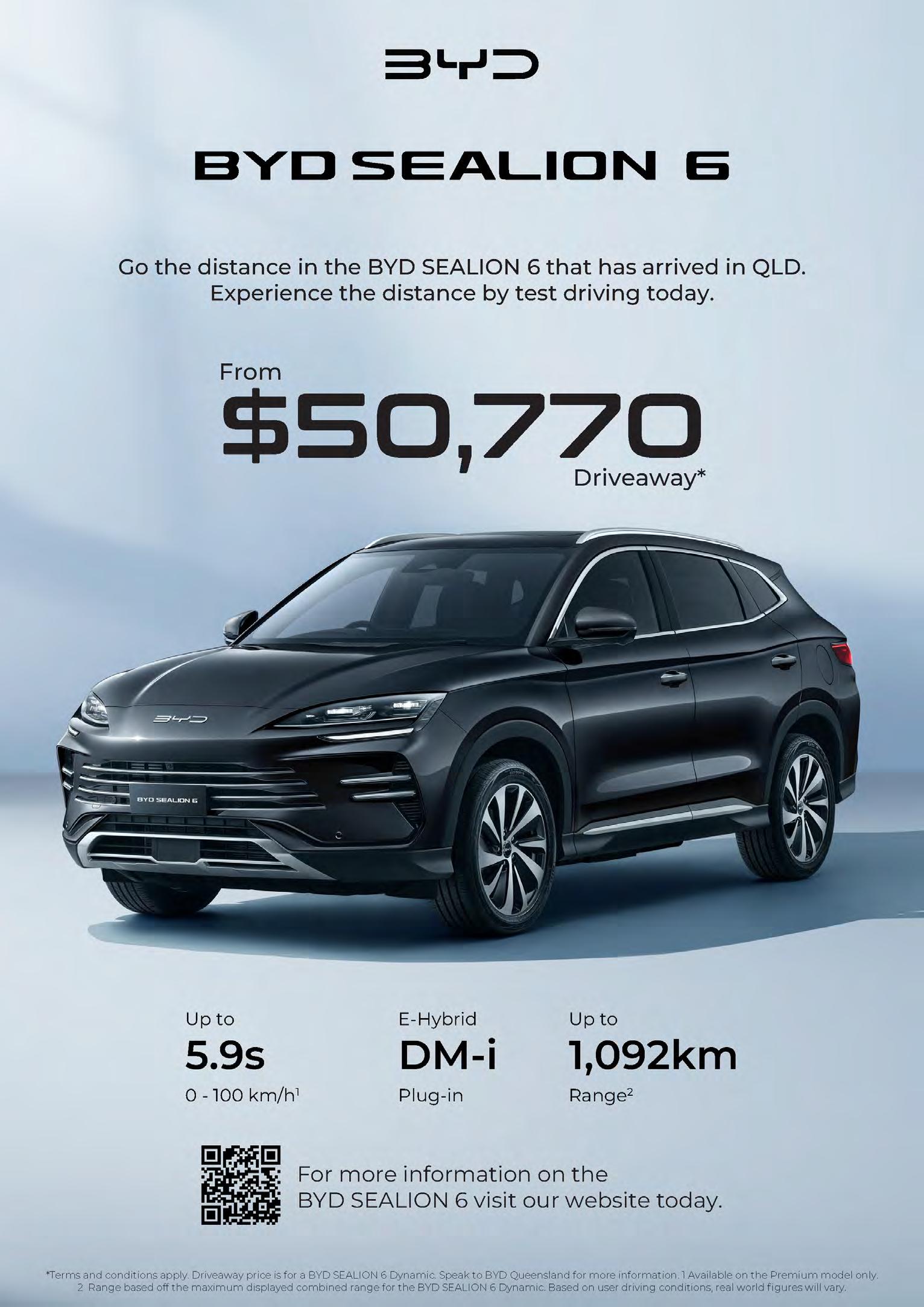 比亞迪 海獅 6 帶你去向遠方 已登陸昆士蘭,現在就來體驗試駕吧。