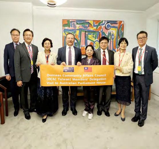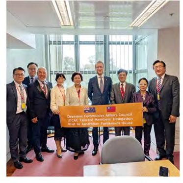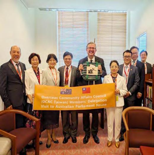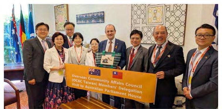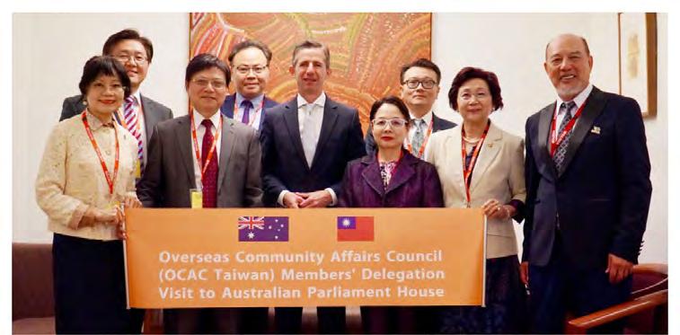 來自澳洲各州的僑務委員為了代表澳洲臺灣 社群向支持自由民主臺灣的國會議員表達謝意, 特別趕在本會期結束之前,自行組團在11月 25、26二天前往坎培拉拜會國會,受到聯邦議員 和助理部長重視,在忙碌的議程之間,抽出時間 接待,聽取僑領的建議。