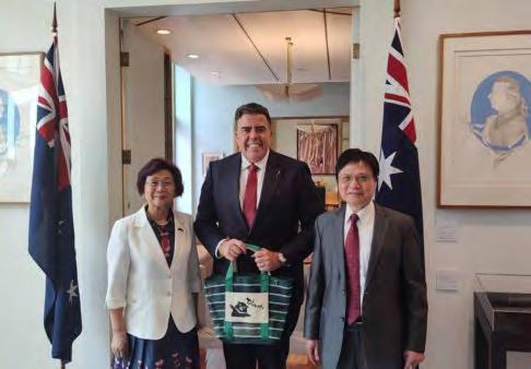 助理貿易部長Tim Ayres、影子外交部長聯 邦參議員Simon Birmingham、影子內政部長聯 邦參議員James Paterson、聯邦眾議員Daniel Mulino、聯邦參議員Paul Scarr、聯邦參議員Raff Ciccone、聯邦眾議員Scott Buchholz、聯邦眾議 員Sam Lim等跨黨派澳洲聯邦政要也都在拜會之 列。