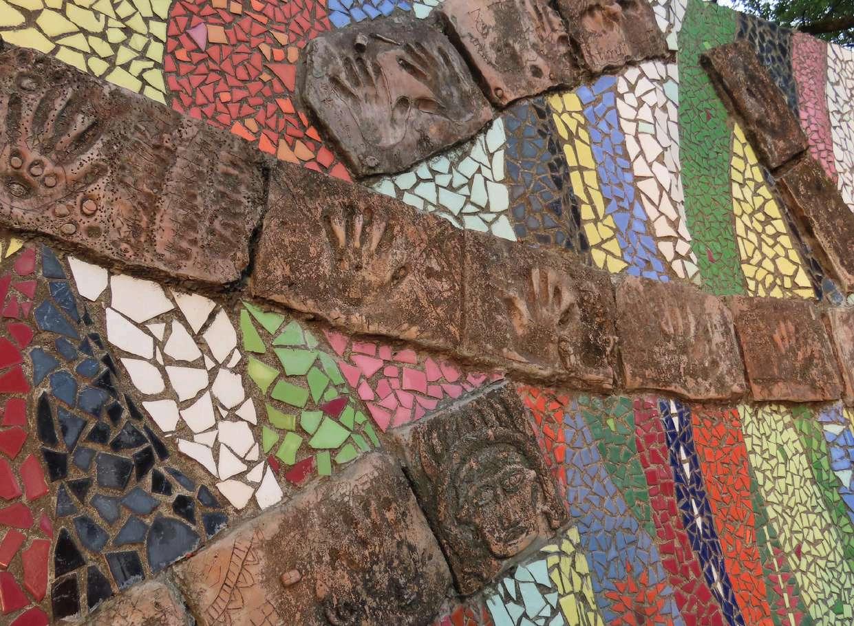 個個三角圖紋緊臨 起代表生活在禮納里的族人,與象徵和平的百合串連起來,而最外圍的蕨類 植物代表自我。姥瑰希望被迫遷離的大家定居在