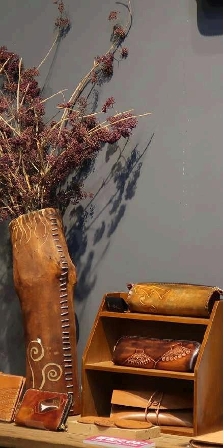 以細膩的雕刻手法結合皮革自身的特殊 性,賦予其作品獨特的樣貌與生命力,每 個出自姥瑰工坊的皮雕作品都是獨 無二 的。