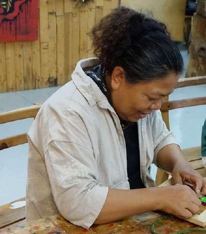 興趣廣泛的她擁有許多身分:家庭主 婦、工藝師、解說員、遊程規劃者等,她 巧妙地串聯這些能力,創立品牌「吾藝良 品」來販售原民文化小物,以及舉辦許多 原民活動。藉這些行動,創造了收入,且 能靈活安排時間,建立起部落和咖啡館之 間的橋梁,並推廣原民工藝與文化。