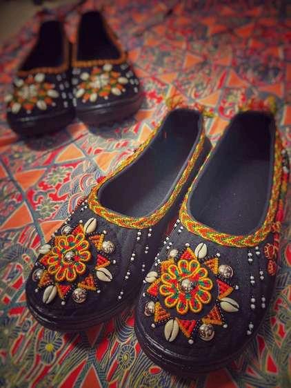 在部落裡,珠繡鞋穿著於重要場 合,畢業典禮或結婚。但那時回鄉的 曼菁發現沒人做珠繡鞋,而珠繡是她 第 個學成的技藝,於是由這方面開 始著手行動。過去的鞋子樣式較為簡 樸,與目前潮流較不符,較不易吸引 顧客。於是她將傳統珠繡鞋上,添加 現代審美觀以及更華麗的圖案,搖身 變為現今的樣式(左圖),技藝也 從那時延續至今。