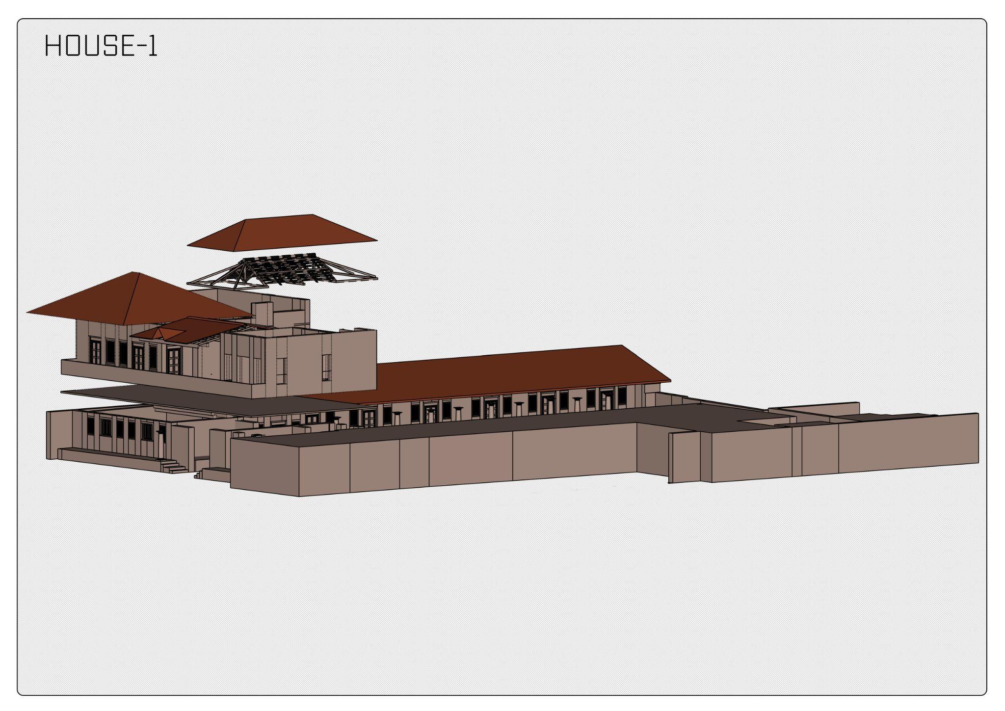 While drawing and generating the 3D model, evidence like the thickness of the wall and the materials in the slab gave a clue to speculate on the construction technique.