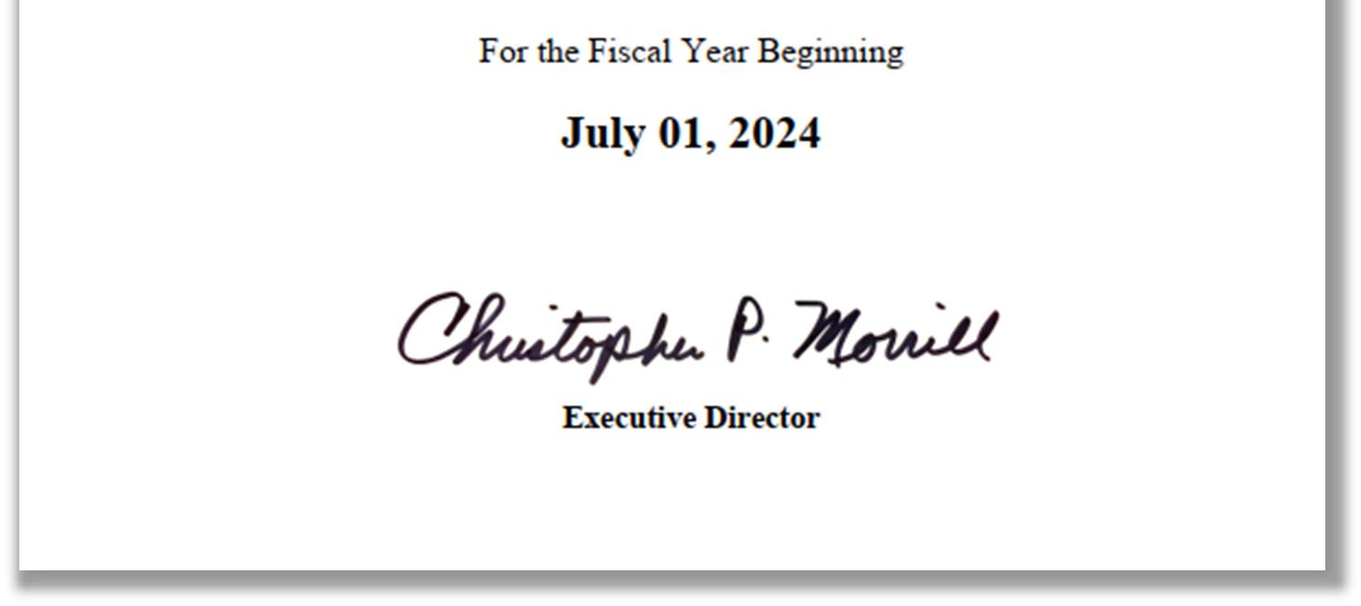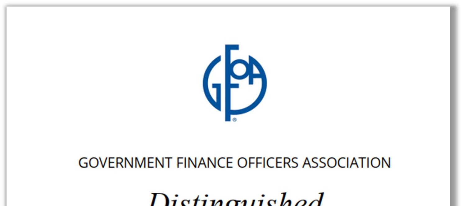 Government Finance Officers Association of the United States and Canada (GFOA) presented a Distinguished Budget Presentation Award to the Town of Chino Valley for its Annual Budget for the fiscal year beginning July 1, 2024. In order to receive this award, a governmental unit must publish a budget document that meets program criteria as a policy document, as a financial plan, as an operations guide, and as a communications device.