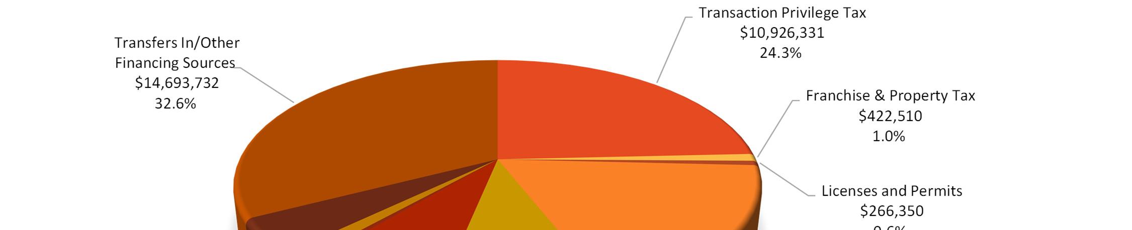 The Town has seen a small decrease in transaction privilege tax (TPT) in recent years due to State changes in certain categories/industries, such as the elimination of residential rental tax Chino Valley does not assess property tax. As such, TPT growth is essential for funding services. The Town is continuing efforts to draw new businesses to our community to offset these decreases. During this budget cycle, the State legislature was considering new legislation to remove or reduce the Food Tax, which would have had a significant negative impact on our budget capacity. Out of concern for the possibility, for FY 2025-26 we adopted a guarded, highly-conservative approach to spending. In total, the proposed expenditures for the upcoming fiscal year in the amount of $46,716,189, represent a decrease of $5,741,119 when compared to the prior year’s adopted budget of $52,457,308. This reduction underscores the Town’s continued commitment to fiscal responsibility, cost containment, and prioritization of projects.