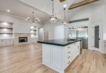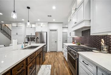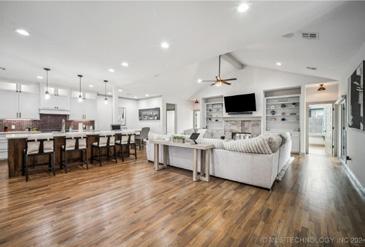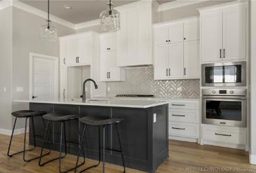 Truly unique custom home abounds with one-of-a-kind designer features. Built in 2023, this Single-level 3 (or up to 5) bedroom, 3 full bath home in Jenks Schools is reserved on a quiet Cul-De-Sac street.