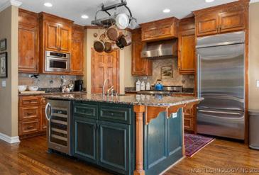 Unmatched Luxury Oasis in Bixby, Oklahoma! Priced below its appraised value ($1,197,000), this exceptional custom-designed home offers immediate equity and unparalleled elegance. Nestled on a serene cul-de-sac, this estate is a masterpiece of luxury and sophistication. The highlight of this home is one of Oklahoma’s most exquisite Tuscan-inspired wine cellars. Featuring 100-year-old Chicago brick, French iron fixtures, hand-painted vineyard murals, and a custom mahogany wine rack with a 1,600 bottle capacity, this wine cellar is a true work of art that must be experienced to be believed. The expansive 2,000+ sq ft deck surrounds a refreshing pool with waterfall, jacuzzi, gas fire pit, and spacious outdoor patio, creating an ideal space for both entertaining and relaxing!