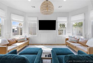A Masterpiece of Luxury & Innovatio, featuring a eamless blend of modern luxury and timeless elegance. Designed as the builder’s personal residence and ‘22 Tulsa Parade of Homes Winner, this home was crafted with an unparalleled detail, ensuring every space is breathtaking and functional. Expansive golf course views, a ustom-designed pool / spa shimmers under the sky, surrounded by lush turf, water features, and custom transitions. The outdoor kitchen is for entertaining, with built-in grill, electric screen enclosures, ceiling heaters, and putting green for enjoyment. For guests, the guest house offers complete independence with kitchen, full bath, washer/dryer, electric shades, gym with a sauna, custom flooring, and sound system ensures wellness within reach. Exterior cameras, tight-lined gutters, and irrigation systems enhance both security and convenience. This isn’t just a home—it’s a lifestyle. A place where every detail tells a story of unmatched craftsmanship and design.
