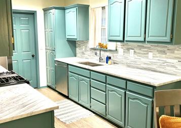 3 Br, 3 full Bath home features a 20’ hammered coppers kitchen counter, hardwood, tile & luxury vinyl flooring!