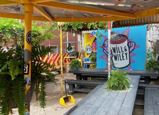 A taproom right outside the Blue Dome District with indoor/outdoor concert spaces.