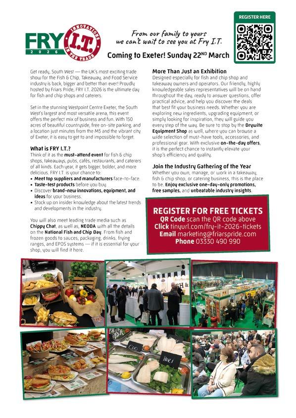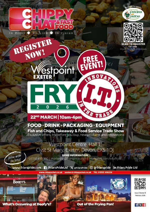 Keep up to date with trade events by visiting www. chippychat.co.uk and clicking on events. If you’re organising an event and would like to send us details so that we might mention it here and/or on the Chippy Chat website email your details to - austen@chippychat.co.uk