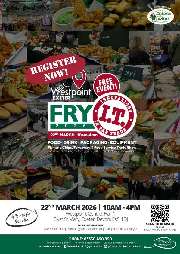 This month our front-page partner is once again Friars Pride. With thousands of visitors, it’s annual Fry-It show is a one stop shop for fish and chip shop and takeaway owners. You will find lots of suppliers exhibiting the latest trends in our industry and what’s more the day is FREE to attend. More info can be found at friarspride.com/info/fryit/