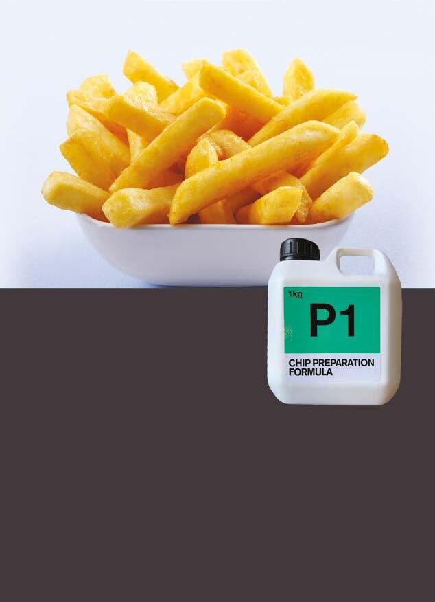forabetterquality chipwhenfried infreshlypeeledand chippedpotatoes ,reducingfryingmediumbreakdown Smallerbottleskeep Anti-clumpingformulafor oncookedchips