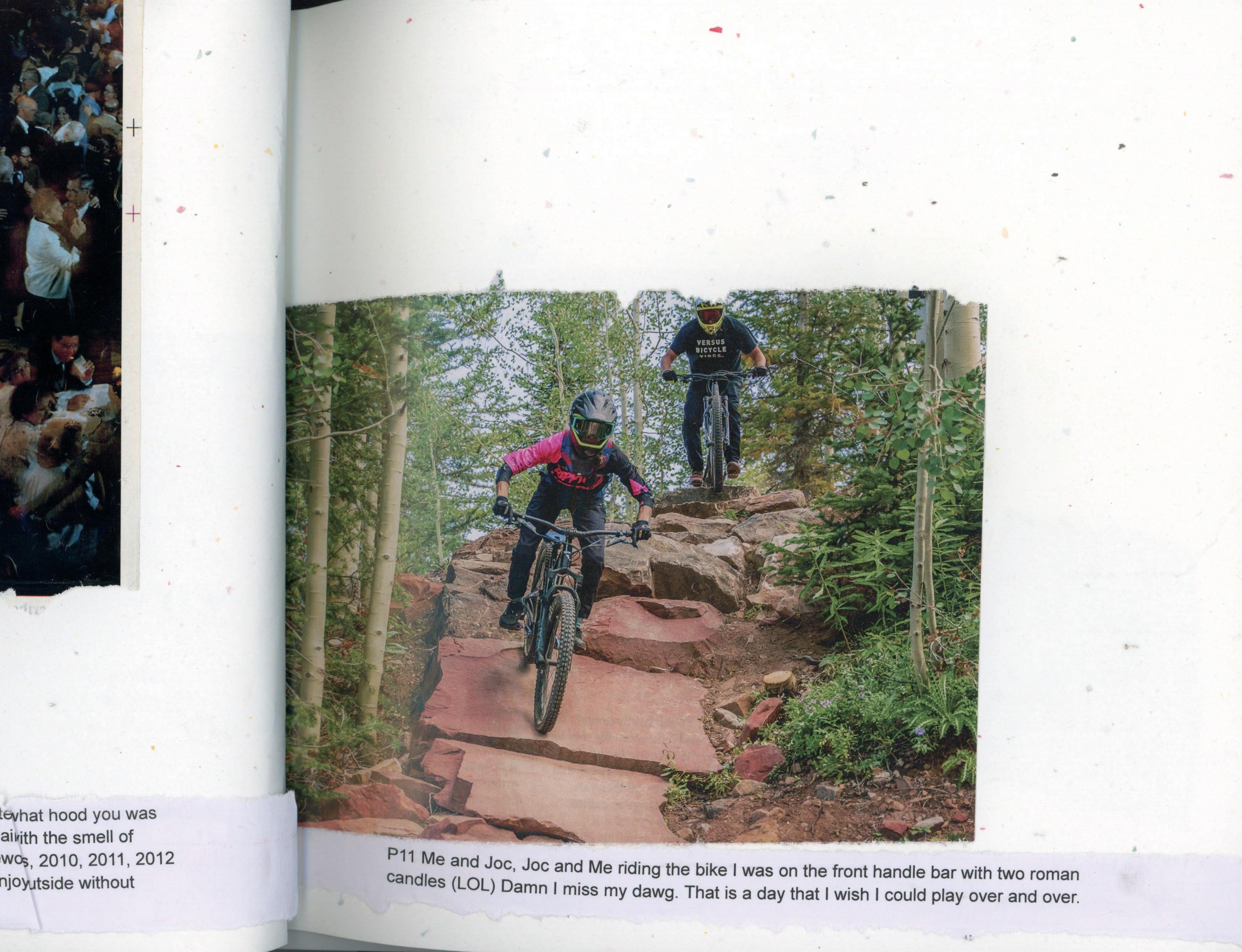 While each author’s text is solely the work of the Author, the image used to create this book’s illustrations have been sourced by various print publications. Authors curate these images and then, using only their hands, manipulate the images through tearing, folding, layering and careful positioning. By applying these collage techniques, Authors transform their written memoirs into illustrated books.
