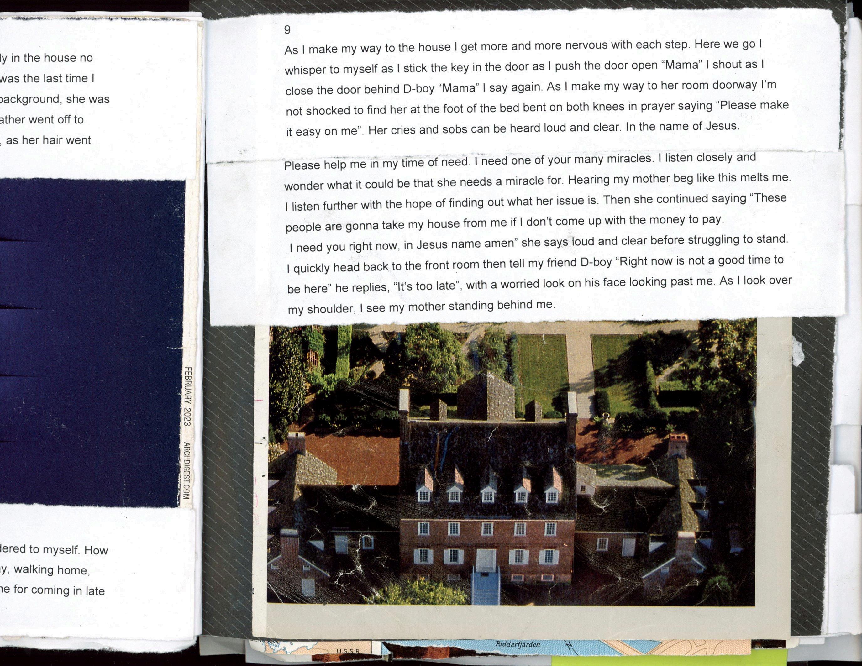 While each author’s text is solely the work of the Author, the image used to create this book’s illustrations have been sourced by various print publications. Authors curate these images and then, using only their hands, manipulate the images through tearing, folding, layering and careful positioning. By applying these collage techniques, Authors transform their written memoirs into illustrated books.