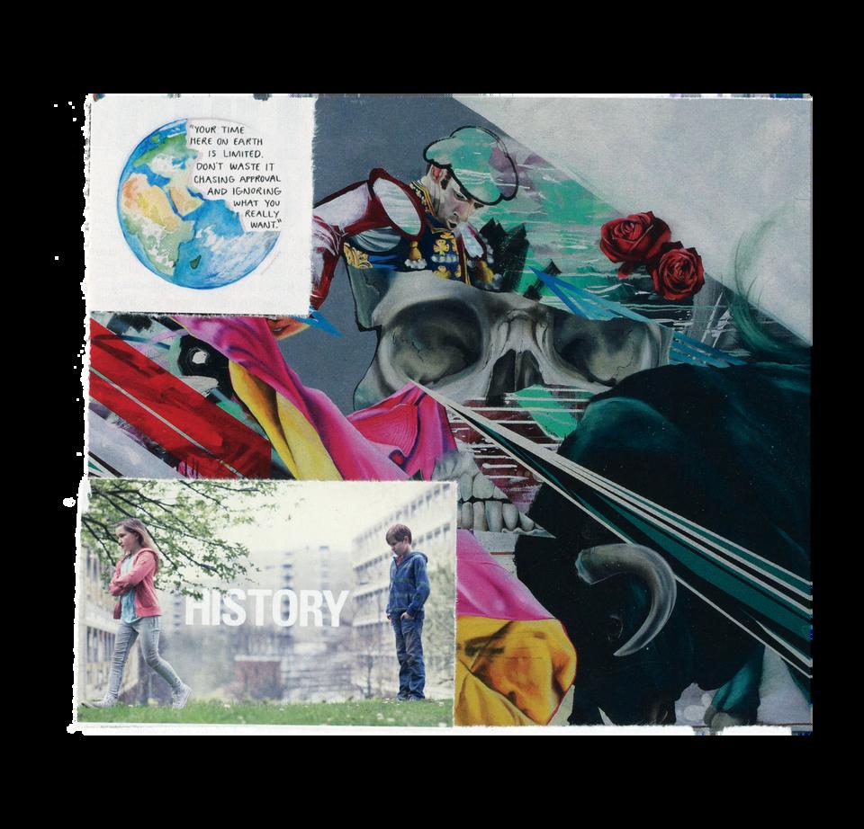 While each author’s text is solely the work of the Author, the image used to create this book’s illustrations have been sourced by various print publications. Authors curate these images and then, using only their hands, manipulate the images through tearing, folding, layering and careful positioning. By applying these collage techniques, Authors transform their written memoirs into illustrated books.
