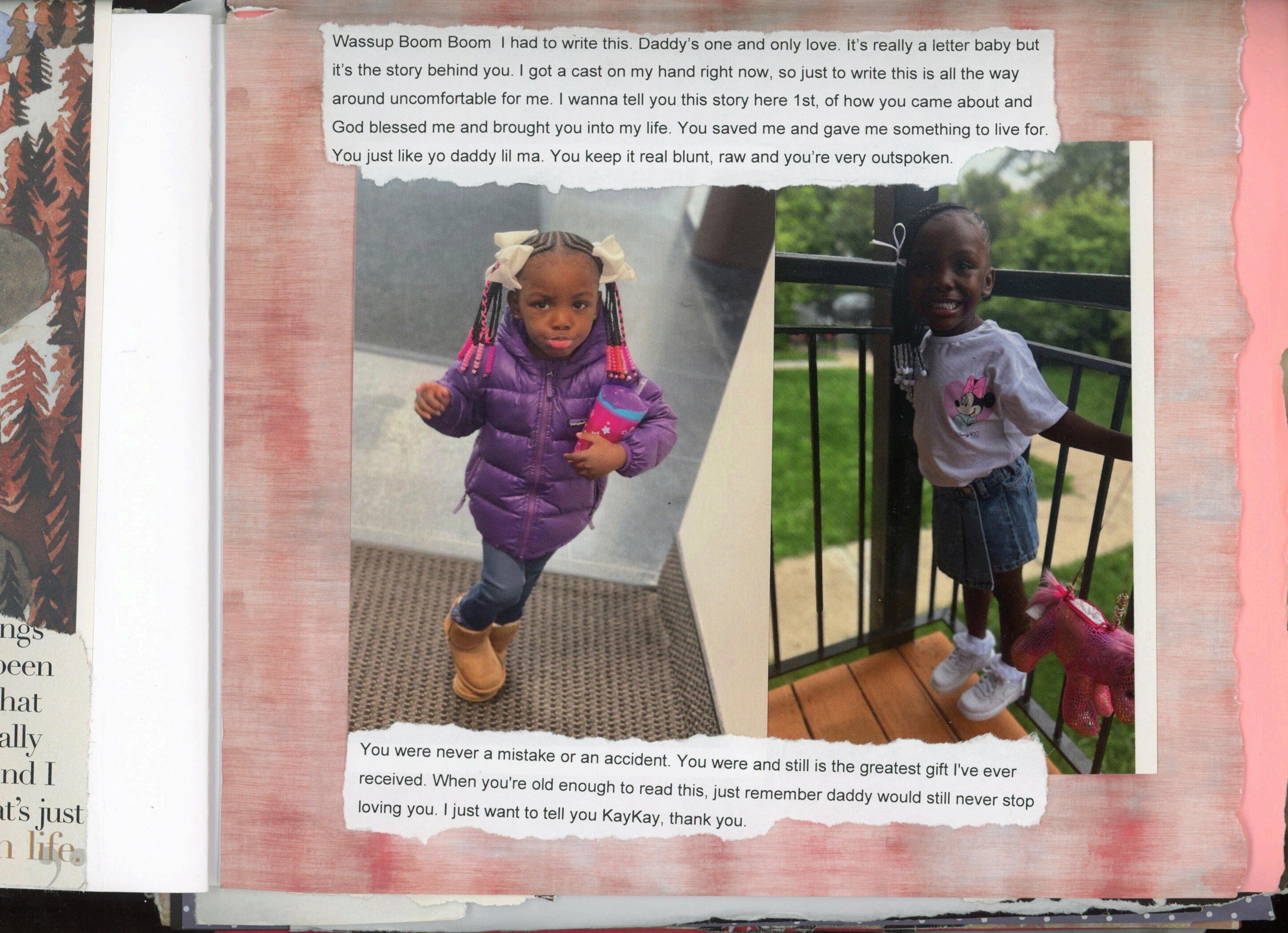 Wassup Boom Boom, I had to write this. Daddy’s one and only love. It’s really a letter baby but it’s the story behind you. I got a cast on my hand right now, so just to write this is all the way around uncomfortable for me. I wanna tell you this story here 1st, of how you came about and God blessed me and brought you into my life. You saved me and gave me something to live for. You just like yo daddy lil ma. You keep it real blunt, raw and you ’ re very outspoken.