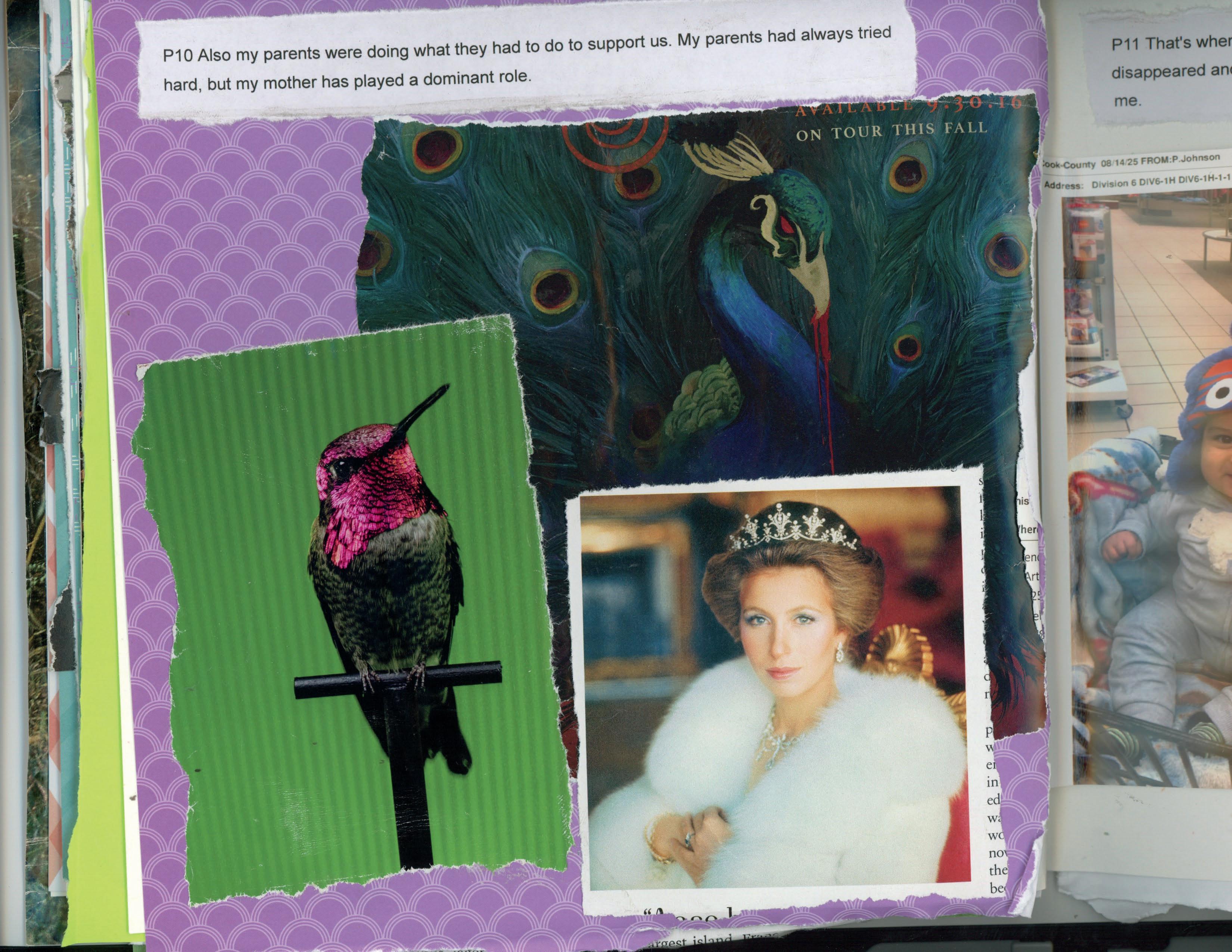 While each author’s text is solely the work of the Author, the image used to create this book’s illustrations have been sourced by various print publications. Authors curate these images and then, using only their hands, manipulate the images through tearing, folding, layering and careful positioning. By applying these collage techniques, Authors transform their written memoirs into illustrated books.