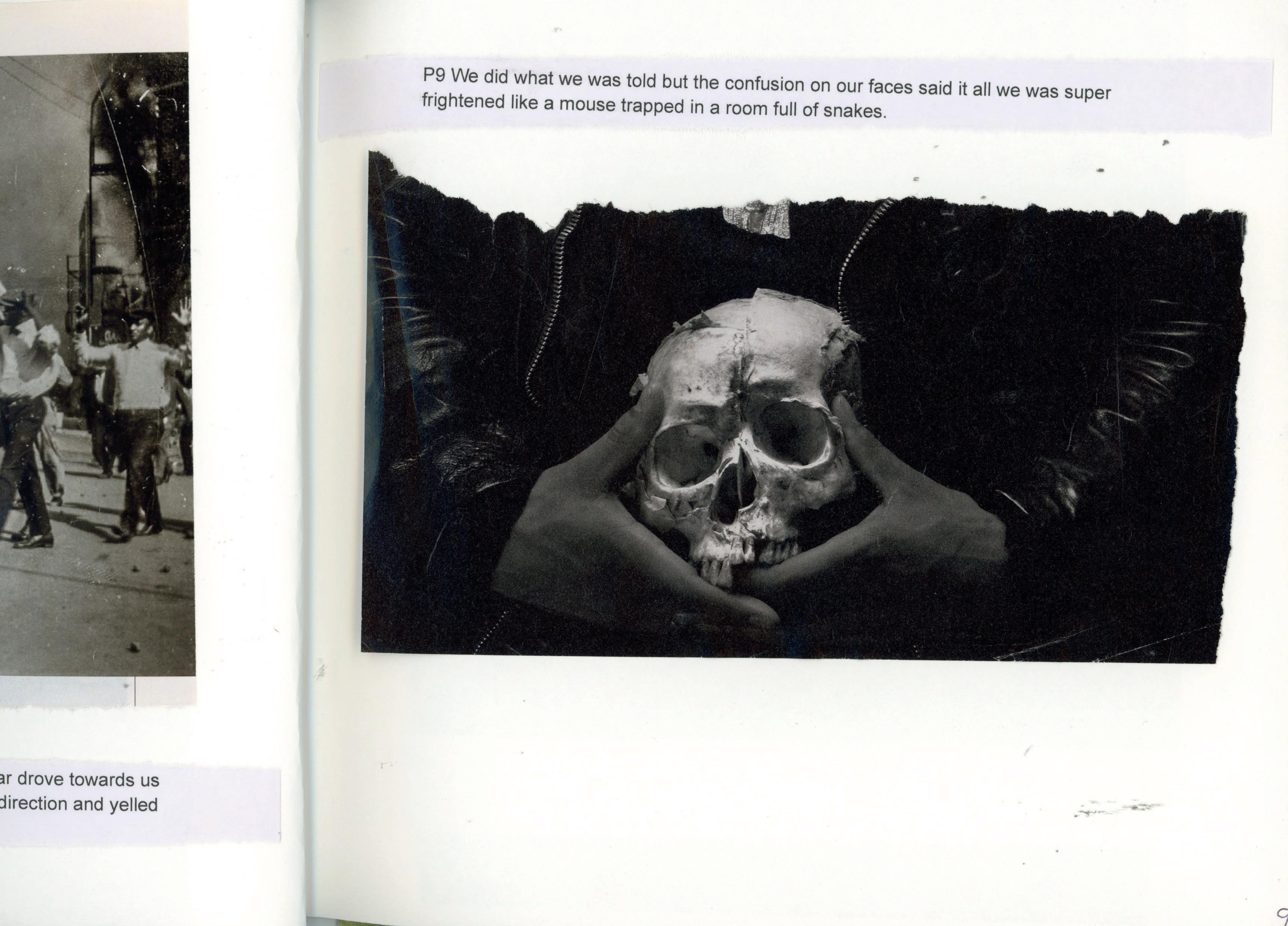 While each author’s text is solely the work of the Author, the image used to create this book’s illustrations have been sourced by various print publications. Authors curate these images and then, using only their hands, manipulate the images through tearing, folding, layering and careful positioning. By applying these collage techniques, Authors transform their written memoirs into illustrated books.