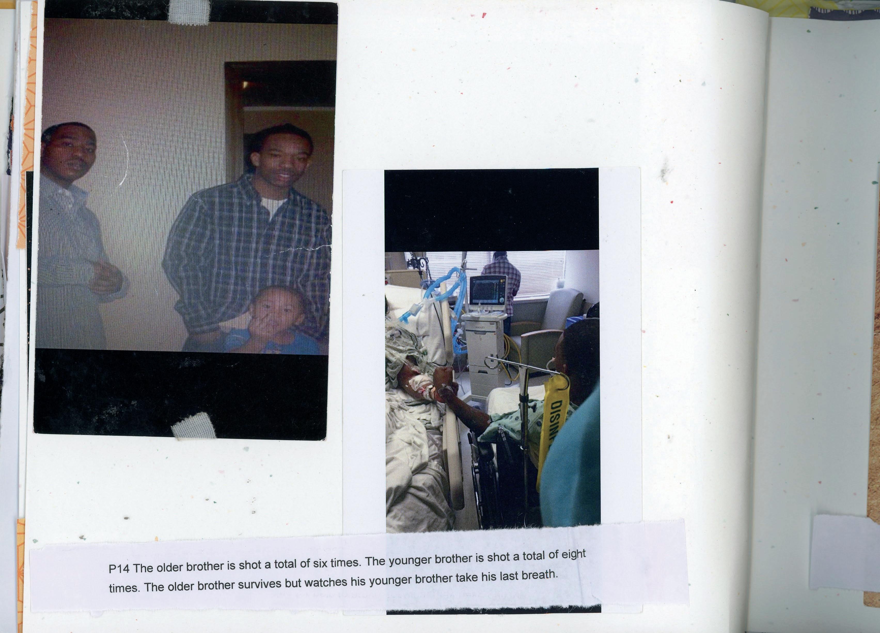 The older brother is shot a total of six times. The younger brother is shot a total of eight times. The older brother survives but watches his younger brother take his last breath.