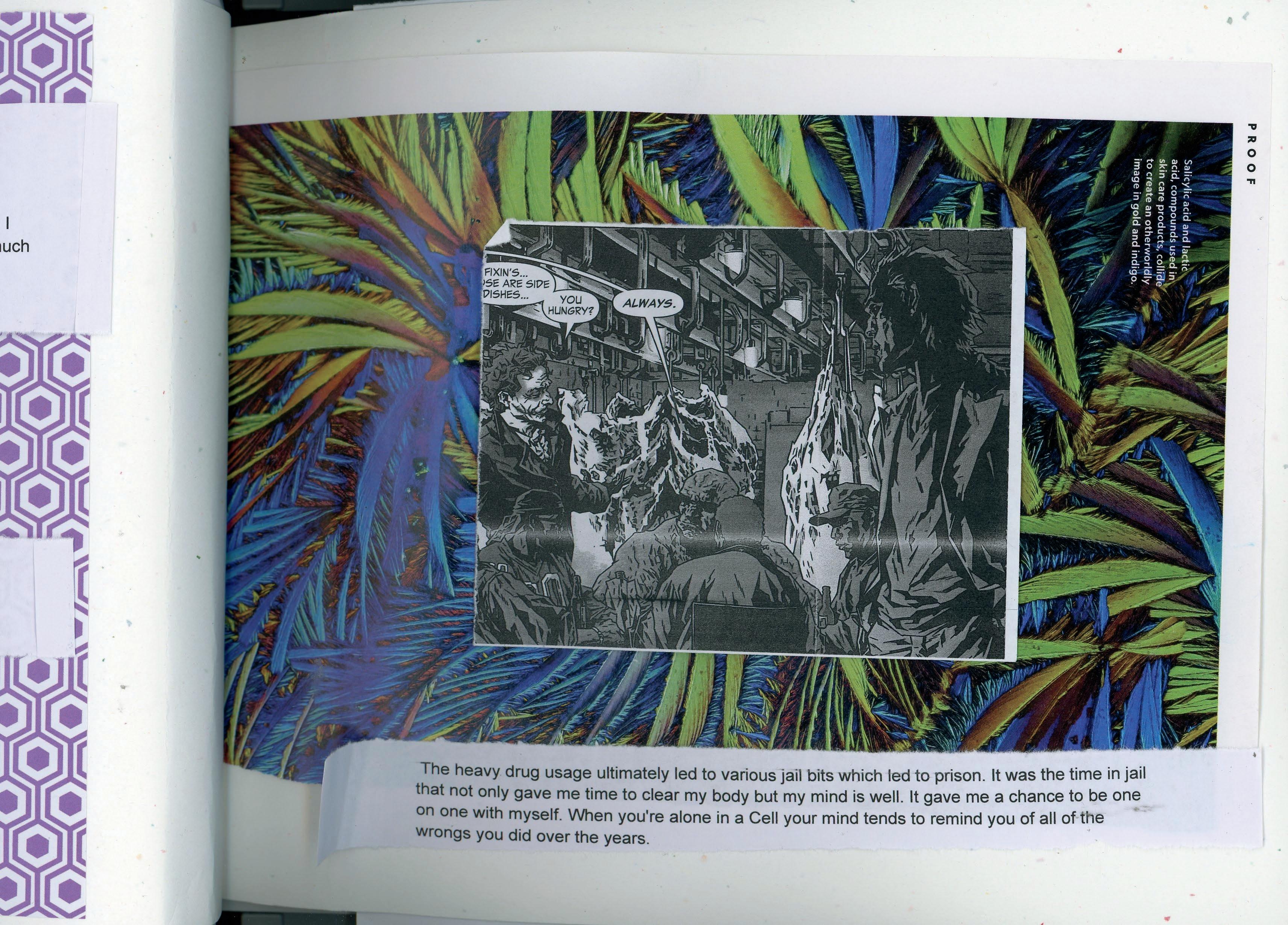 While each author’s text is solely the work of the Author, the image used to create this book’s illustrations have been sourced by various print publications. Authors curate these images and then, using only their hands, manipulate the images through tearing, folding, layering and careful positioning. By applying these collage techniques, Authors transform their written memoirs into illustrated books.